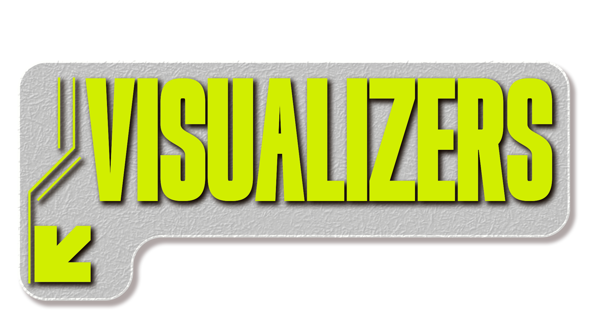 Sign with textured gray background and bright yellow text reading 'Visualizers' with an arrow pointing left.